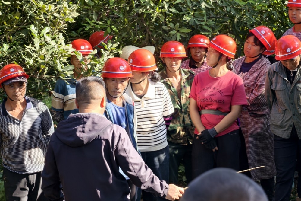 在培訓現場,專業人員圍繞四項核心技術開展手把手教學,從修剪量控制、肥料配比,到涂白劑調配和病蟲害防治時機,均進行細致講解。種植戶學習熱情高漲,積極提問交流,展現出濃厚的學習氛圍。