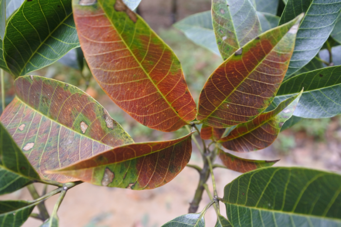 季風性落葉病果、葉片及葉柄癥狀