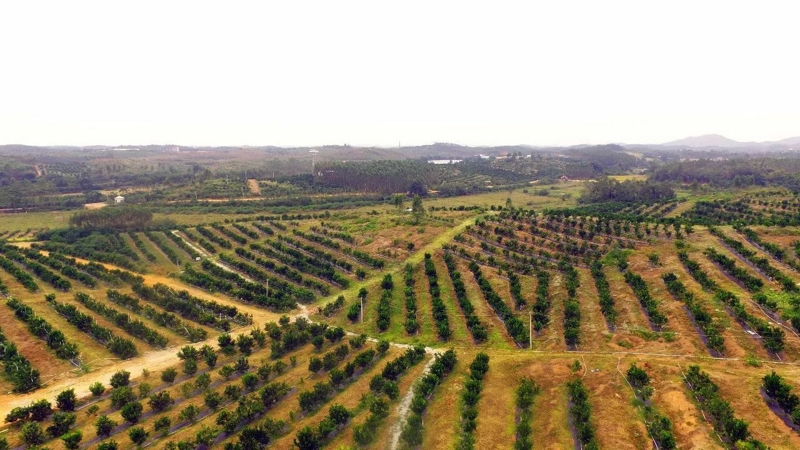 走進(jìn)那呈饅頭形的山嶺,環(huán)山而植的林帶,一環(huán)扣著一環(huán)地,從山腳纏至山頂。從遠(yuǎn)望去,恍如一個(gè)巨大的甲狀動(dòng)物,蹲坐在山地間。環(huán)山種植的紅江橙,以其3×3的株行距,以一個(gè)個(gè)塔狀,立于梯間。已經(jīng)成熟待收的紅江橙,一串串地掛滿(mǎn)枝梢。果壓樹(shù)枝,而使枝杈下垂。從遠(yuǎn)處看,恍如珍珠爬上樹(shù)梢,如火球在泛紅,如火點(diǎn)在燃放,如睡美人在仰躺,如翡翠在打點(diǎn)......