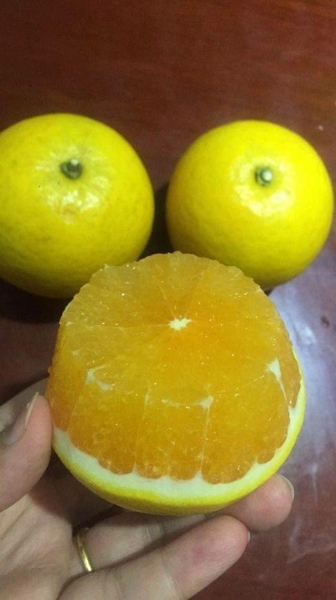 “是紅江橙種,我是廉江營(yíng)仔人。那年我回家,紅江場(chǎng)的一位朋友約我去探他,而要了幾十粒紅江橙籽,拿到這里培育。因?yàn)榉N苗不準(zhǔn)帶上飛機(jī)啊。經(jīng)過(guò)培育,十多棵發(fā)了芽,后又枯死了幾棵,就只剩下這三棵了。經(jīng)過(guò)三年的培育,早已結(jié)果了。每年摘下來(lái),成為招待朋友的佳品。他們也拿了一些橙籽回去,經(jīng)培育后,也傳來(lái)了豐收的喜訊。紅江橙終于在異國(guó)他鄉(xiāng)結(jié)果了。