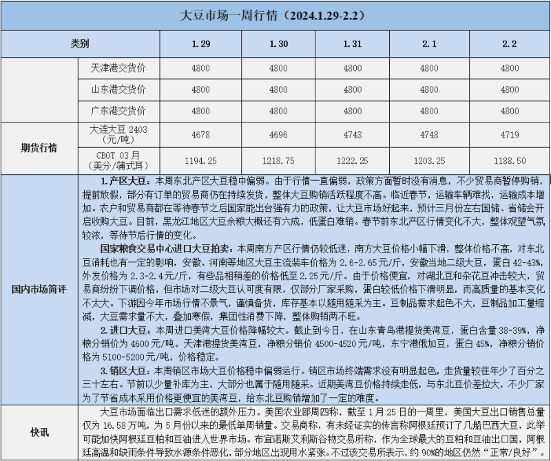 天然橡膠、大豆、玉米市場(chǎng)一周行情(2024.01.29-02.02)