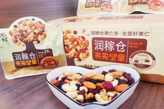潤稼倉天天堅果:潤稼倉天天堅果根據不同年齡人群每日攝取堅果營養區間25g-30g,選取中間參數27g,采用4種果仁,2種果干配料,營養搭配均衡,富含鈣、維生素、不飽和脂肪酸等,包裝攜帶方便,更適合廣大消費者食用。