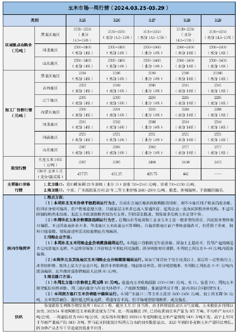 天然橡膠、大豆、玉米市場(chǎng)一周行情(2024.03.25-03.29)