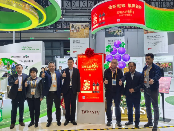 值得一提的是,王朝酒業(yè)作為國(guó)產(chǎn)葡萄酒的領(lǐng)軍者,攜慶祝中法建交60周年白蘭地及乙巳蛇年生肖酒等新品驚艷亮相。天津食品集團(tuán)黨委書(shū)記、董事長(zhǎng)萬(wàn)守朋,集團(tuán)黨委副書(shū)記、董事、總經(jīng)理趙國(guó)榮等領(lǐng)導(dǎo)共同為王朝乙巳蛇年生肖酒揭幕。利達(dá)糧油以匠心精神打造健康主食,利民調(diào)料以多元化產(chǎn)品滿足市場(chǎng)新需求,海河乳品依托全產(chǎn)業(yè)鏈優(yōu)勢(shì)為消費(fèi)者提供放心奶,桂順齋與祥德齋傳承百年糕點(diǎn)技藝,為觀眾帶來(lái)味蕾上的享受。迎賓、望月、廣源、嘉立荷與康嘉則分別在肉制品、蛋品及養(yǎng)殖領(lǐng)域深耕細(xì)作,實(shí)現(xiàn)了從源頭到餐桌的全產(chǎn)業(yè)鏈覆蓋。這些國(guó)內(nèi)品牌的精彩展示,不僅彰顯了集團(tuán)在國(guó)內(nèi)市場(chǎng)的行業(yè)地位,也為進(jìn)一步拓展全球市場(chǎng)奠定了堅(jiān)實(shí)基礎(chǔ)。