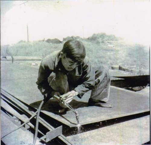 元旦過后,在沒有任何造船專業機械設備的情況下,大家用雙肩把第一塊鋼板抬上了船臺,接著兩塊、三塊、五塊、十塊,每塊鋼板都是1.4米×6米……