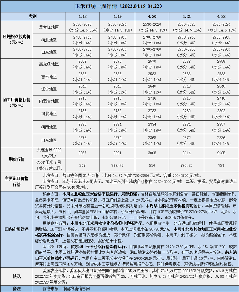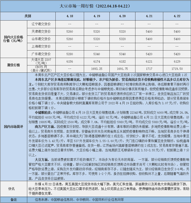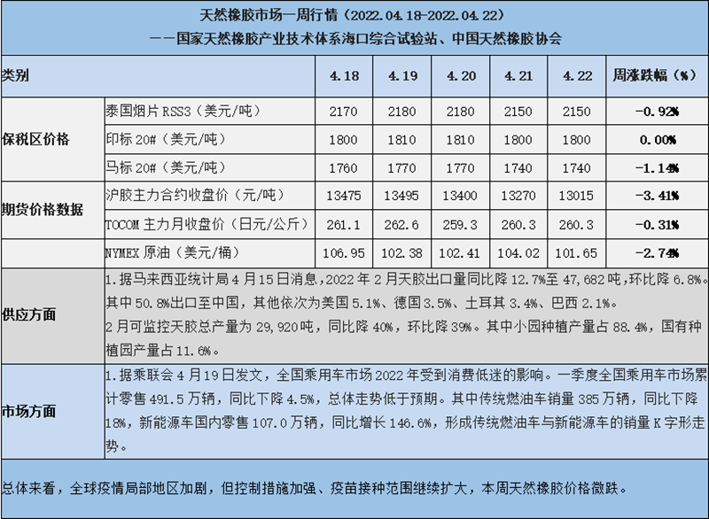 天然橡膠、大豆、玉米市場一周行情(2022.04.18-04.22)