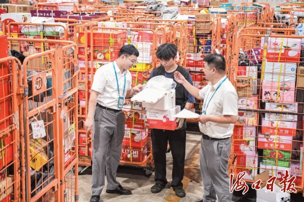 日前,在海口火山荔枝金農分揀中心內,工人們忙著分揀、包裝,一顆顆精挑細選的海口火山荔枝王,在嚴格品控和全程冷鏈保障下,以最新鮮的狀態“飛”向海外市場消費者的餐桌。靳潔深有感觸:“除了火山荔枝本身品質過硬受市場青睞外,海口海關、海口市農業農村局等部門在我們水果出口時也做了不少工作。”她介紹,依托荔枝出口“綠色通道”,實現了即到即報、即查即放,有效縮短了通關查驗時長。