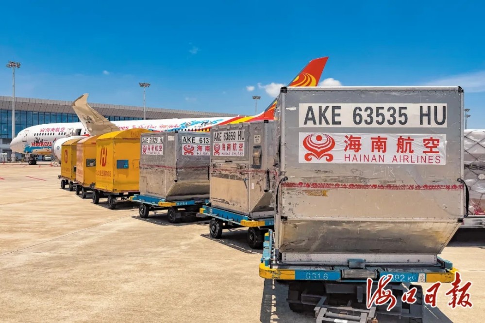 5月21日,海南妃子笑荔枝搭乘HU7911(海口-倫敦)航班前往倫敦。海口市融媒體中心記者蘇弼坤 通訊員李耀樂 攝