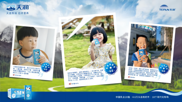 LOGO詮釋:天山北坡是優良牧草的基因庫,群峰圍繞著一片奇麗的千里牧場。優良牧草漫山生長對畜牧業發展具有重要作用。天潤乳業的奶源基地就坐落在此,世界三大黃金奶源帶之一,草場水源、日照形成了獨一無二的純生態體系,為乳品的品質提供了天然保障。