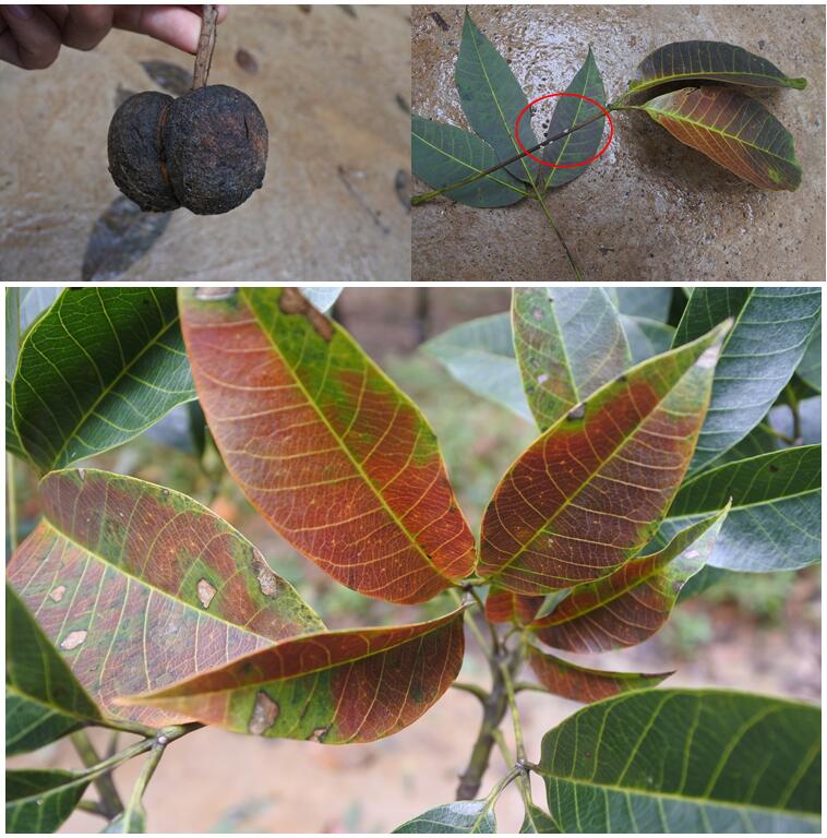季風性落葉病果、葉片及葉柄癥狀