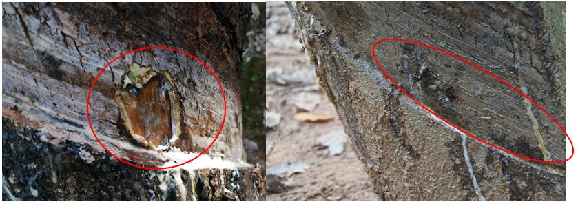 (3)化學防治:割面已出現感病癥狀的植株,晴天時采用外科手術(刮去表皮,慢性擴展型病斑可以不進行)及時涂藥治療,并停割。