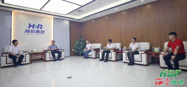 海南橡膠領導與專家團親切交談。黃薇 攝
