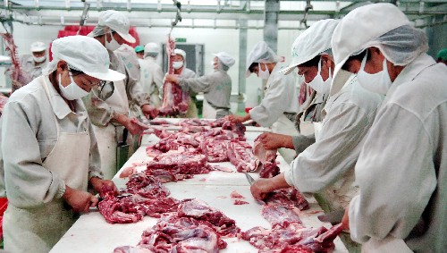 近日,寧夏農墾賀蘭山清真肉羊產業集團與部分中東國家的企業簽訂了共2200噸羊肉銷售協議,標志著寧夏牛羊肉食品大批量進入國際市場。目前,寧夏全區肉牛飼養量突破百萬頭,肉羊養殖量接近千萬只。(新華社記者 李紫恒 攝)