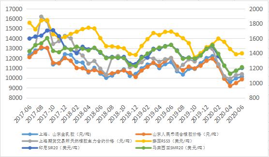 供給方面,前期冬春季節病蟲害影響減弱,東南亞主產國干旱天氣逐漸好轉,三季度全球天然橡膠主產區將全面開割,順利進入產膠旺季,新膠供應量穩步增加。需求方面,7月份國內汽車消費進入傳統淡季,輪胎出口訂單尚未出現明顯好轉,加上以丁二烯為代表的合成膠價格放量降價,天然橡膠消費增長動力不足,供求基本面對價格支撐作用不強。但由于目前國內外價格現貨市場已經低于成本線,各國保護產業和刺激需求的政策陸續落地,價格繼續探底的空間不大。綜上,預計后期價格仍以低位震蕩為主,如全球范圍內疫情得到有效控制,下游市場需求恢復,天然橡膠價格有望在震蕩中回調。