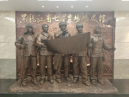 場史館的首廳,用雕塑展示七星發展歷史,這些雕塑代表的是七星農場領導集體和廣大職工群眾集體的縮影。
