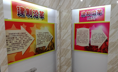廣東省湖光農場場史館始建于2012年,位于辦公樓第三層,面積126.18平方米,是農場紅色文化基地。主要由農場簡介、建制沿革、恩澤篇、墾荒篇、聚合篇、發展篇、愿景篇、榮譽篇、大事記9個板塊組成,以圖片、文字形式展示農場紅色發展歷史,展陳獎杯、獎狀、字畫等實物60多件,圖片157余張。