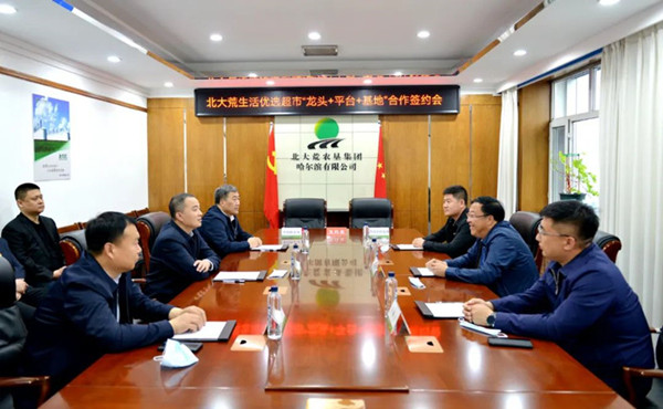 繼與多家北大荒龍頭企業和農場建立“龍頭+平臺+基地”合作后,近日,北大荒生活優選超市與查哈陽農場簽訂合作協議。根據協議,查哈陽農場優質農產品正式進入北大荒生活優選超市銷售。簽約儀式前,雙方召開座談會開展深入交流,并實地參觀考察北大荒生活優選超市旗艦店。