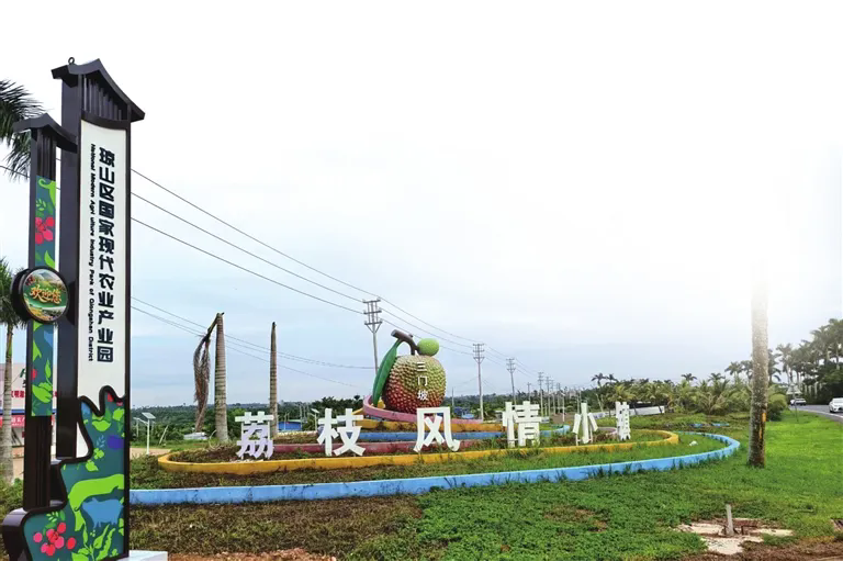 從??诔霭l,沿223國道一路南行,在一片一眼望不到邊的荔枝園旁,一顆碩大的“荔枝”闖入眼簾,旁邊“荔枝風情小鎮”幾個大字,讓人馬上意識到已抵達三門坡鎮。