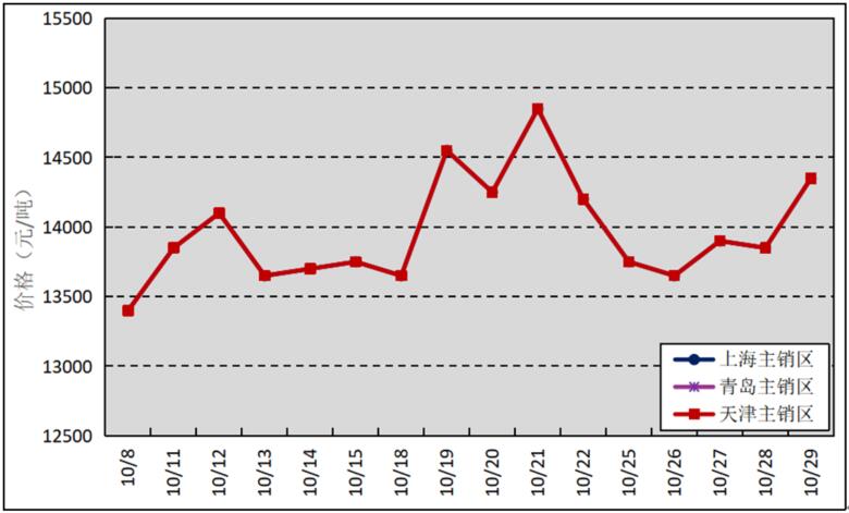 國內主銷區:10月,國產全乳標準膠上海市場平均價格13966元/噸,環比上漲1343元/噸,最高價為14850元/噸,最低價為13400元/噸;青島市場平均價格13966元/噸,環比上漲1343元/噸,最高價為14850元/噸,最低價為13400元/噸;天津市場平均價格13966元/噸,環比上漲1337元/噸,最高價為14850元/噸,最低價為13400元/噸。