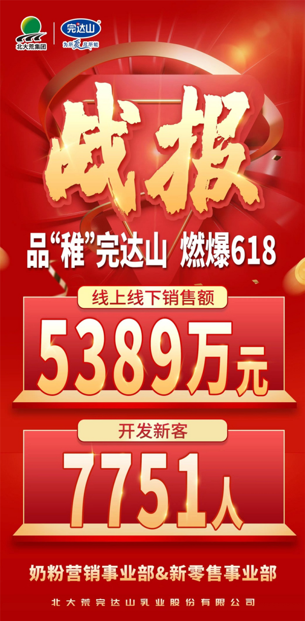 為轉(zhuǎn)變營(yíng)銷方式,搶抓市場(chǎng)機(jī)遇,6月17日至19日,為期3天的品“稚”完達(dá)山直播狂歡活動(dòng)燃爆全國(guó)。此次“618”大型主題直播活動(dòng),眾多明星大咖齊助陣,活動(dòng)當(dāng)天,北大荒完達(dá)山乳業(yè)股份有限公司領(lǐng)導(dǎo)為活動(dòng)全力打CALL,完達(dá)山稚采品牌代言人馬麗隔空助力,黑龍江電視臺(tái)主持人鄧楊助陣直播間。直播間在線人數(shù)一度突破25萬人,創(chuàng)造線上線下銷售額5389萬元,新客開發(fā)7751人。