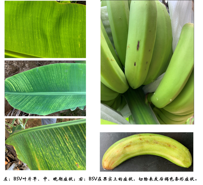 香蕉條斑病毒病(Banana streak virus, BSV)又名香蕉線條病毒病,嚴重危及哥倫比亞、烏干達、哥斯達黎加、澳大利亞、南非、印度、巴西、菲律賓等國家香蕉產業,可致每公頃損失4.5—30 噸產量。過去,香蕉條斑病在我國也有發生,但是對生產尚未造成嚴重危害。
