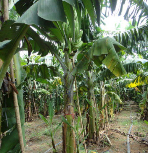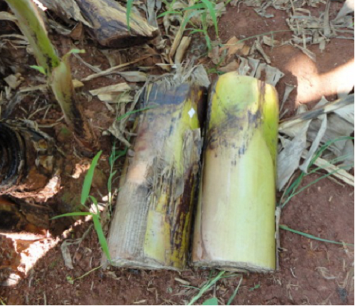 (三)清潔蕉園:經常割除香蕉假莖外層腐爛葉鞘,特別是采收香蕉后,砍下的假莖要及時清理,保持蕉園清潔衛生,消滅害蟲孳生場所。對已受害的蕉園,砍下帶蟲假莖和舊蕉頭殘體,投入糞坑漚肥,或者縱切成幾份暴曬5天以上將其中的幼蟲殺死。