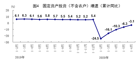上半年,全國固定資產(chǎn)投資(不含農(nóng)戶)281603億元,同比下降3.1%,降幅比1-5月份收窄3.2個百分點,比一季度收窄13.0個百分點。分領(lǐng)域看,基礎(chǔ)設(shè)施投資下降2.7%,制造業(yè)投資下降11.7%,降幅比一季度分別收窄17.0、13.5個百分點;房地產(chǎn)開發(fā)投資增長1.9%,一季度為下降7.7%。全國商品房銷售面積69404萬平方米,下降8.4%;商品房銷售額66895億元,下降5.4%,降幅比一季度分別收窄17.9、19.3個百分點。分產(chǎn)業(yè)看,第一產(chǎn)業(yè)投資增長3.8%,一季度為下降13.8%;第二產(chǎn)業(yè)投資下降8.3%,第三產(chǎn)業(yè)投資下降1.0%,降幅比一季度分別收窄13.6、12.5個百分點。民間投資157867億元,下降7.3%,降幅比一季度收窄11.5個百分點。高技術(shù)產(chǎn)業(yè)投資增長6.3%,一季度為下降12.1%;其中高技術(shù)制造業(yè)和高技術(shù)服務(wù)業(yè)投資分別增長5.8%和7.2%。高技術(shù)制造業(yè)中,醫(yī)藥制造業(yè)、計算機及辦公設(shè)備制造業(yè)投資分別增長13.6%、8.2%;高技術(shù)服務(wù)業(yè)中,電子商務(wù)服務(wù)業(yè)、科技成果轉(zhuǎn)化服務(wù)業(yè)投資分別增長32.0%、21.8%。社會領(lǐng)域投資增長5.3%,一季度為下降8.8%;其中衛(wèi)生、教育投資分別增長15.2%、10.8%,一季度為分別下降0.9%、4.0%。從環(huán)比看,6月份固定資產(chǎn)投資(不含農(nóng)戶)比上月增長5.91%。