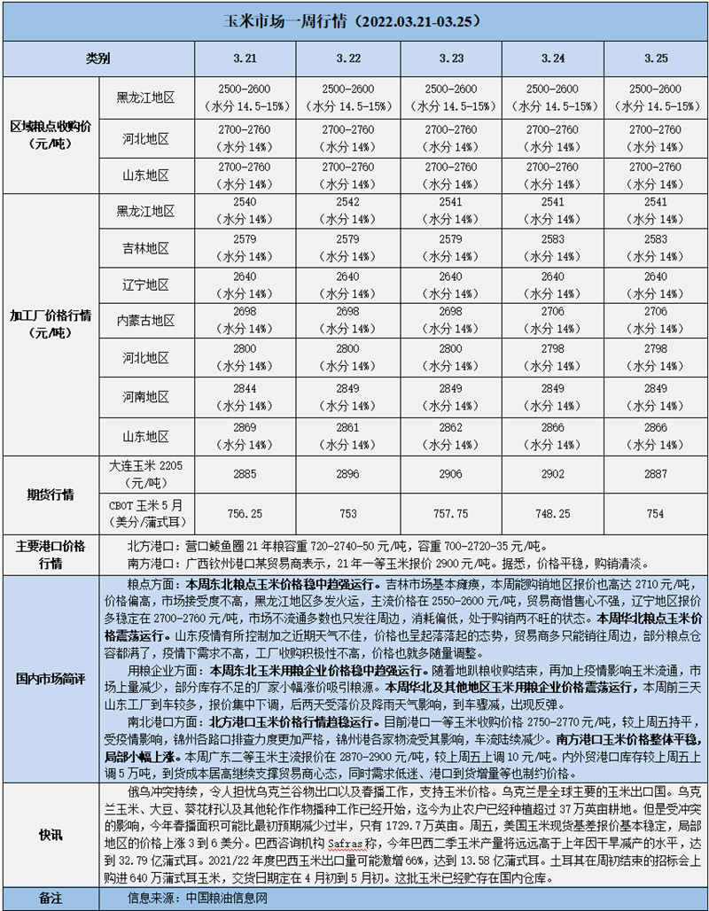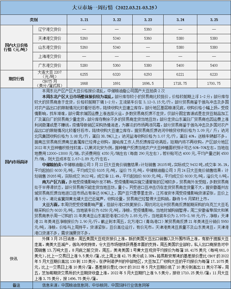天然橡膠、大豆、玉米市場一周行情(2022.03.21-03.25)