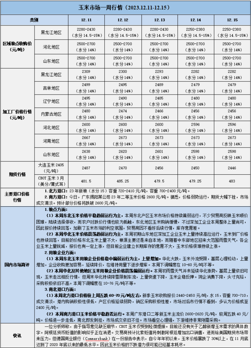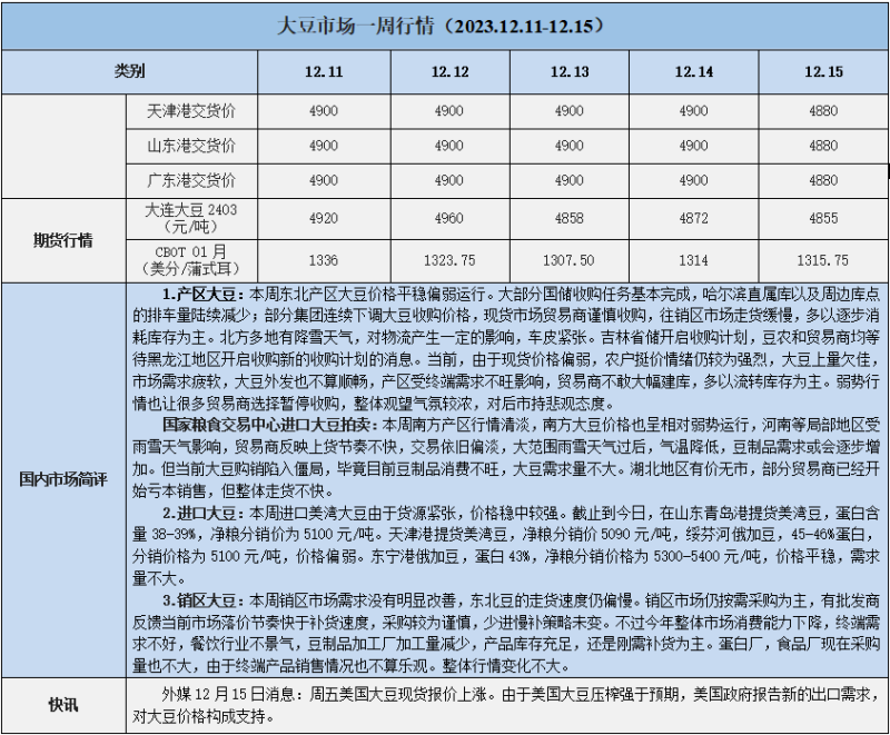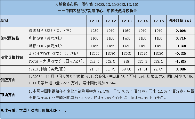 天然橡膠、大豆、玉米市場一周行情(2023.12.11-12.15)
