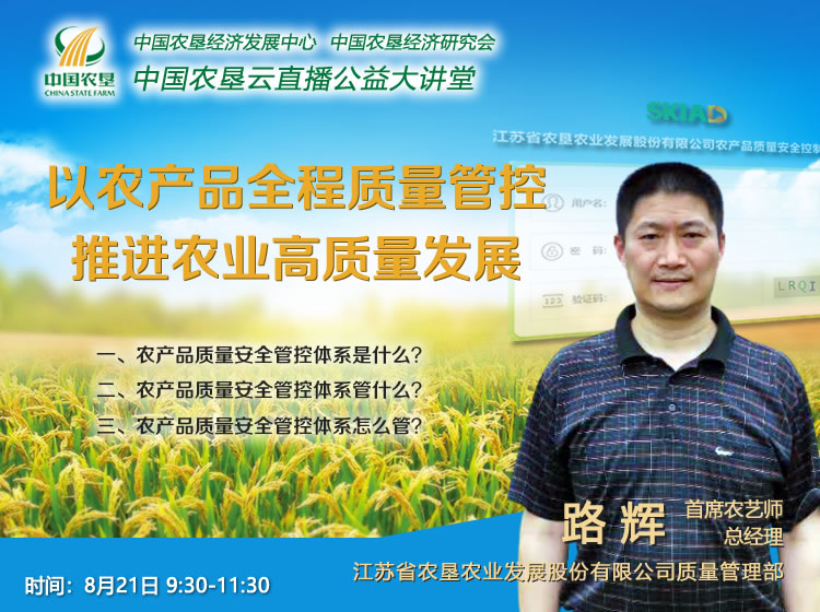 路輝,高級農藝師,現為蘇墾農發質量管理部總經理、江蘇省農墾集團首席農藝師、中國農墾第一屆標準化委員會委員,長期從事農墾農產品質量安全管理與風險控制研究等工作,牽頭并參與起草《江蘇農墾農產品質量安全標準化控制手冊匯編》、《農墾優質水稻生產技術操作規程》、《農墾系統優質稻谷儲運技術規范》等多項標準化技術規程;主持蘇墾農發農產品質控體系信息化平臺項目建設;獲中國商業聯合會科學技術獎一等獎一項;編寫專業技術標準2項,獲得多項著作權,發表論文專著30余篇。