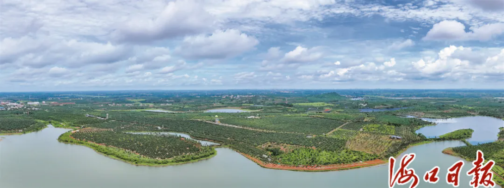 從空中俯瞰瓊山區(qū)三門坡鎮(zhèn)福湖火山荔枝種植示范基地,連片的果樹生機勃勃。??谑腥诿襟w中心記者 蘇弼坤 攝